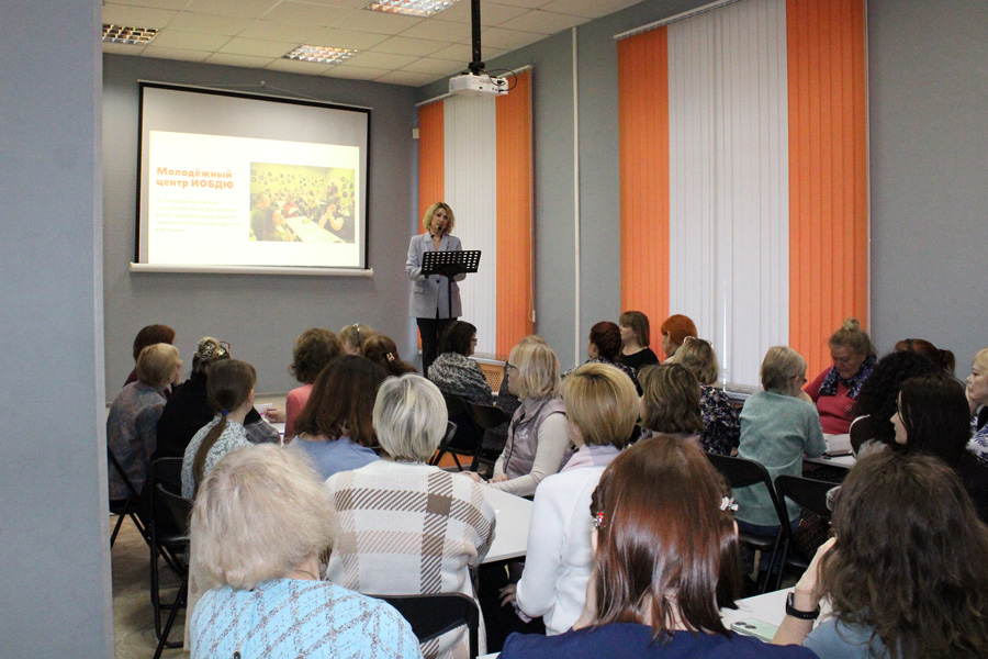 Опытом работы по организации семейного досуга в стенах библиотеки поделилась заведующая отделом поддержки творческих инициатив ИОБДЮ Е.В. Голубева. Елена Вячеславовна отметила важность организации совместного культурного досуга для молодых семей, их общего участия в интеллектуальных мероприятиях, так как это помогает лучше взаимодействовать, понимать друг друга, укрепляет семейные узы. На протяжении ряда лет Молодежный центр ИОБДЮ реализует проект «Назад в будущее», объединяющий квизы «Восьмидесятые», «Девяностые», «Нулевые», участниками которых наряду с молодежными командами становятся и семейные.