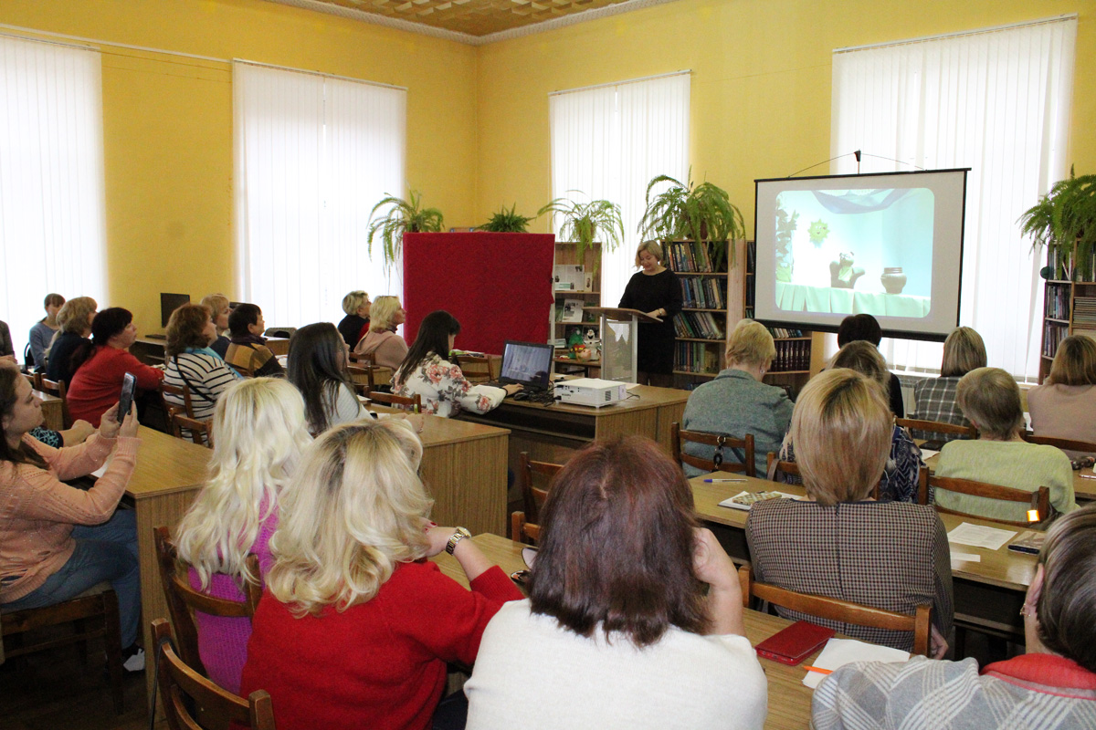 Продолжила работу семинара заведующая отделом «Детство» Ирина Викторовна Челышева. В своем сообщении она познакомила собравшихся с 10 способами, помогающими сделать любое литературное занятие необычным и запоминающимся, среди них: эффектное начало, подбор интересных фактов, вовлечение детей в действие. Важным моментом в организации мероприятий для детей младшего возраста коллега считает эмоциональность выступления, грамотное общение с аудиторией, включение в мероприятие физкультразминок, игр и заданий на развитие творческих способностей (рисование, сочинительство).
