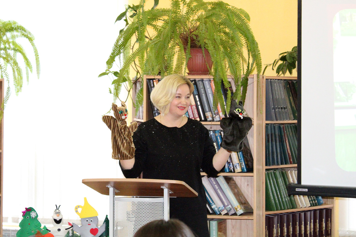 Своеобразным продолжением и яркой иллюстрацией предыдущего выступления стала консультация «Театрализованные формы работы в продвижении детской книги и чтения», с которой выступила заведующая Детской библиотекой МАУК «ЦБС» г. о. Шуя О.Е. Корсакова. При организации для детской аудитории познавательно-игровых, театрализованных, фольклорных программ, литературных утренников, квестов коллеги из Шуйской библиотеки активно используют элементы кукольного театра. Оксана Евгеньевна отметила, что с помощью театрализованного представления можно эмоциональнее, нагляднее, доходчивее рассказать о писателе, его творчестве, литературном произведении, рекомендовать книги для чтения. Кроме того, элементы театрализации создают определенную атмосферу, прекрасное настроение, надолго остаются в памяти юных читателей и в итоге способствуют активизации процессов чтения художественной литературы. Творческим подарком от коллег из Шуи стало приветствие с элементами кукольного театра в адрес участников семинара, которое вызвало живой эмоциональный отклик собравшихся.