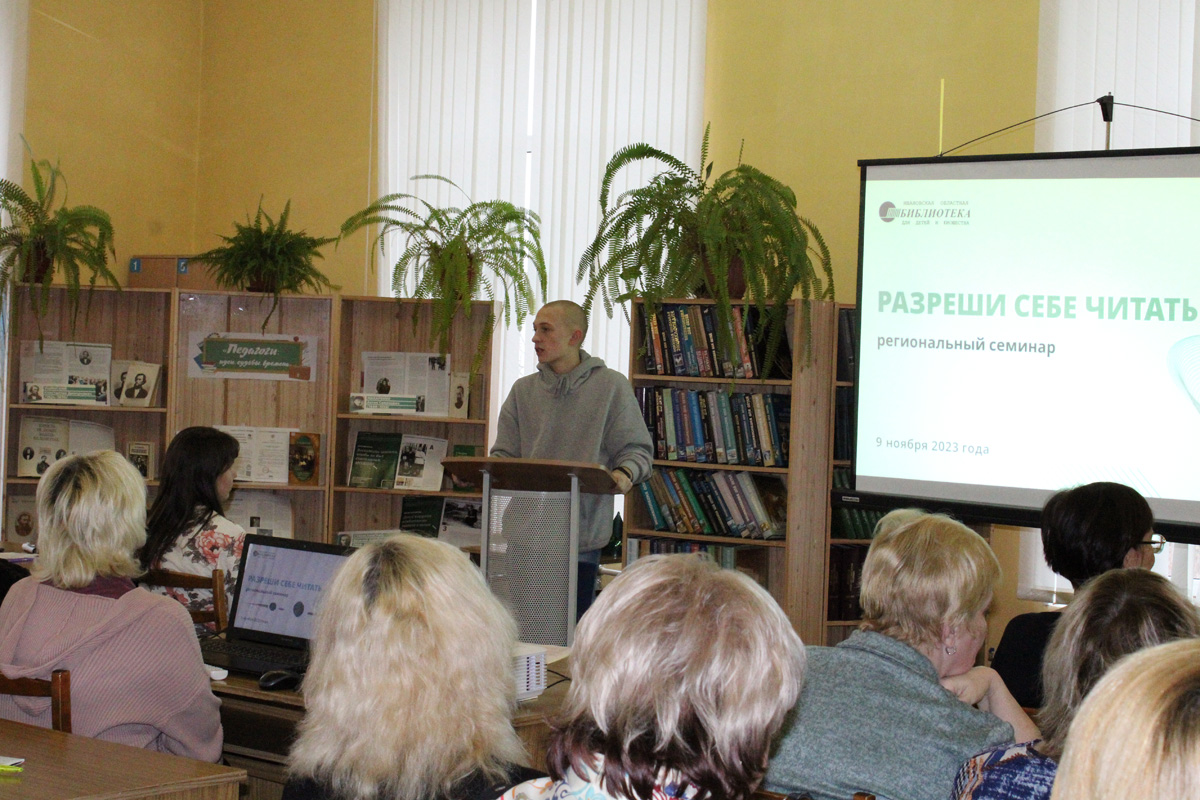 9 ноября 2023 года в Ивановской областной библиотеке для детей и юношества состоялся семинар для библиотекарей региона, работающих с детьми и юношеством, на тему «Разреши себе читать».