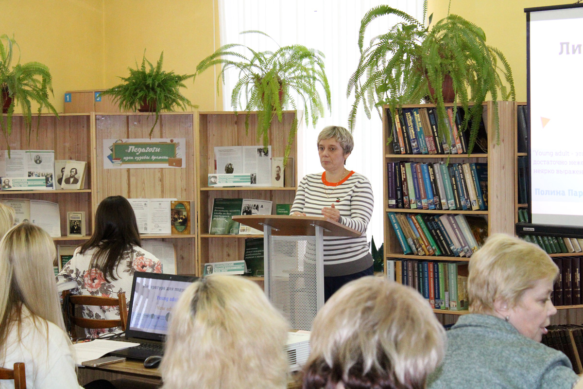 «Книги для подростков: новые имена и формы работы» – тема консультации главного библиотекаря Отдела поддержи творческих инициатив ИОБДЮ Л.А. Зайцевой. Коллега представила обзор современных произведений для подростков и молодежи. Определив жанровые приоритеты читательской аудитории этого возраста, спикер не просто представила книги, но и проанализировала их: какие проблемы поднимаются в том или ином произведении, стоит ли его рекомендовать современному подростку, на что обратить внимание при работе с книгой. Среди большого количества современных писателей Любовь Анатольевна обратила внимание коллег на творчество отечественных писателей: Тамары Михеевой, Натальи Маркеловой, Марины Ясинской, Екатерины Соболь, работающих в жанре фэнтези; Максима Сонина (детектив-квест), Лены Сокол (детектив, мистический триллер), Аси Лавренович (сентиментальная проза), Юлии Кузнецовой, Михаила Самарского (истории из жизни подростков, отражающие социальные проблемы, трудности взросления). Среди зарубежных авторов она отметила Стефани Гарбер, Карен Макманус.