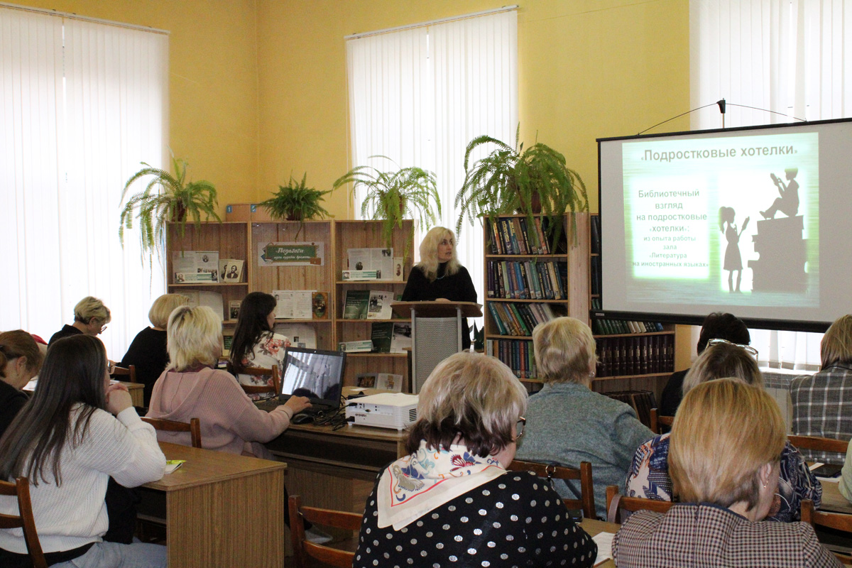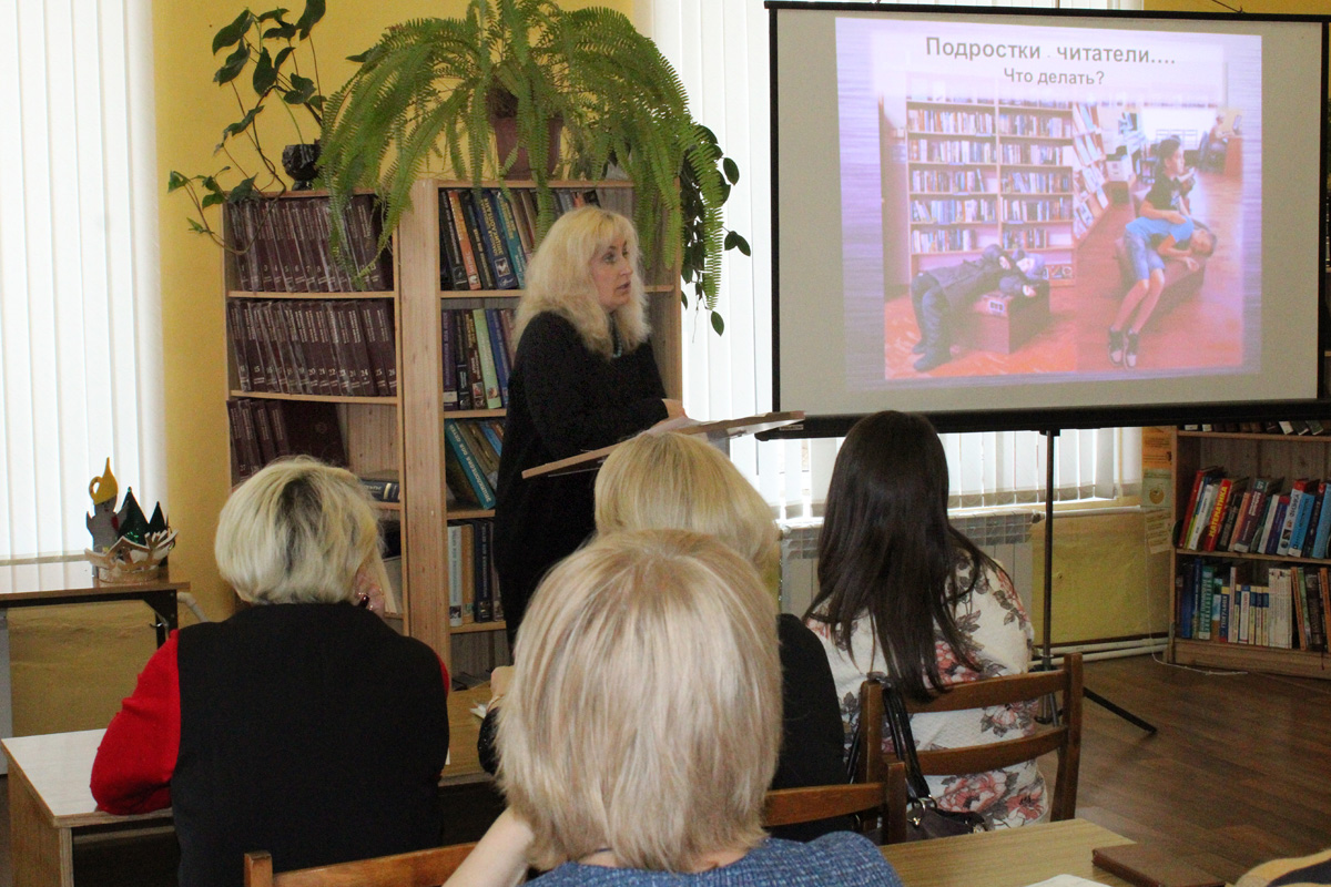 Опытом работы по организации мероприятий для детей среднего и старшего школьного возраста поделилась с коллегами главный библиотекарь В.В. Филимонова. В своем выступлении на тему «Подростковые хотелки»: проекты зала «Литература на иностранных языках» Вера Викторовна рассказала о реализованных инициативах, которые способствуют самовыражению пользователей библиотеки, позволяют продемонстрировать свои таланты, общаться со сверстниками в неформальной обстановке, среди них: выставочный проект «Моя книга», мероприятия «Бенефис читателя», «День чтения вслух».