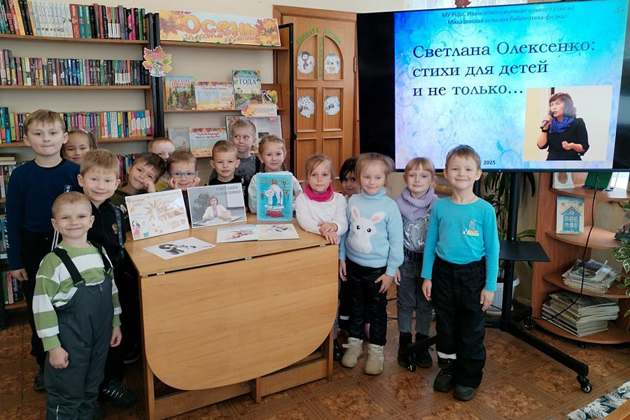Цикл мероприятий по творчеству Светланы Олексенко был организован в филиалах библиотечной системы Ивановского района. Подвязновская сельская библиотека подготовила литературный час «Хороший человек». Читали стихи «Моя бабуля», «Новое платье», «Хороший человек», «Рассказ Тёмки Светлова, как он с папой ходил в цирк» и смотрели презентацию «Светлана Олексенко: поэзия – образ жизни» юные гости Буньковского филиала. Час веселого чтения «Добрый мир стихов Светланы Олексенко» и громкие чтения «Стихи для детей и не только...» состоялись в Богданихской и Михалевской библиотеках, Новоталицкой детской сельской библиотеке.