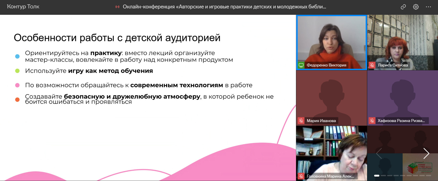 - > Онлайн-конференция «Авторские и игровые практики детских и молодежных библиотек в контексте креативных индустрий»