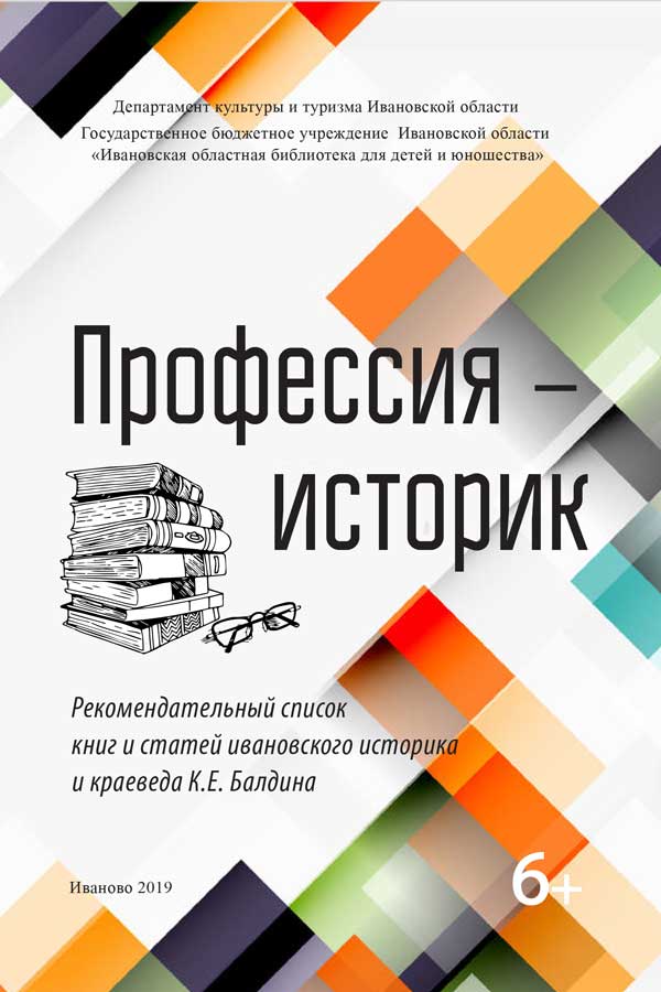- Балдин, К.Е. Ивановский край в истории Отечества : учебное пособие по историческому краеведению для учащихся 9 класса / Кирилл Евгеньевич Балдин [и др.]. – Иваново : Референт, 2007. – 208 с. : ил.