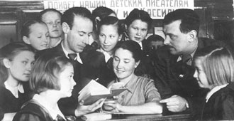 В мае 1945 года сотрудники библиотеки сделали своим читателям замечательный подарок, пригласив в гости известных писателей Сергея Михалкова и Льва Кассиля, книгами которых тогда зачитывалась детвора.