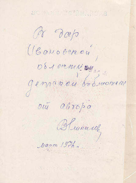 На память о встречах с читателями Василий Дмитриевич всегда оставлял на своих книгах автографы, содержащие добрые и теплые слова, обращенные к детям.
