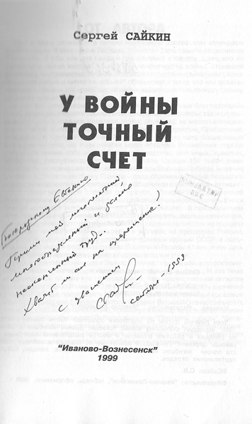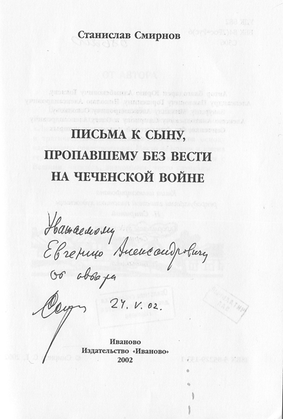- Смирнов, С.Г. Письма к сыну, пропавшему без вести на Чеченской войне / С.Г. Смирнов. – Иваново : Иваново, 2002. – 114 с.