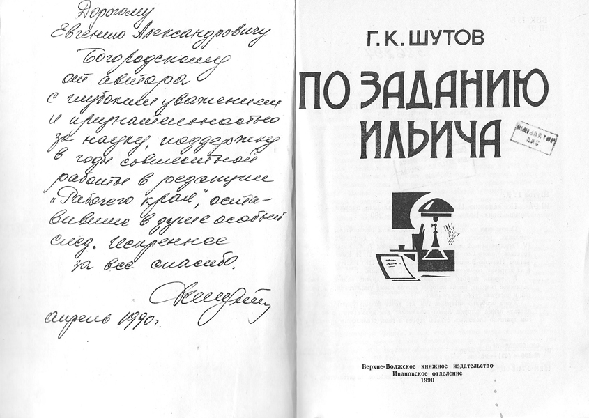 - Шутов, Г.К. По заданию Ильича : документальные очерки / Г.К. Шутов. – Ярославль : Верхне-Волжское книжное изд-во, 1990. – 280 с.