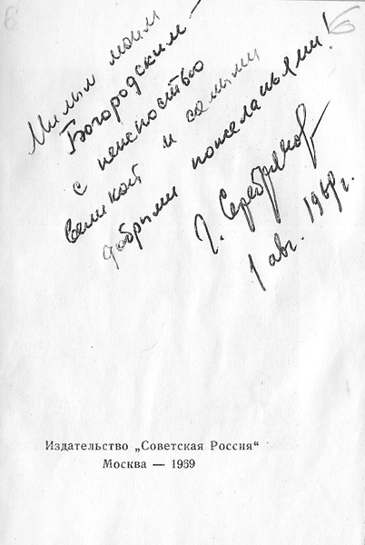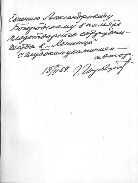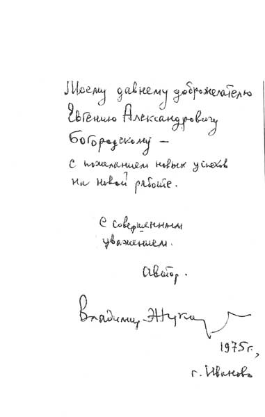 Е.А. Богородский – легенда литературной журналистики, один из достойнейших примеров для начинающих журналистов. Поэтому важное место в рассматриваемой нами коллекции занимают книги с автографами коллег-журналистов, работавших с Евгением Александровичем или под его руководством в редакциях ивановских газет. Несколько автографов адресовано ему учениками и последователями, соавторами по перу.