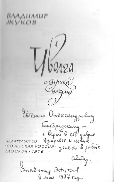 - Жуков, В.С. Иволга : лирика, поэмы / В.С. Жуков. – М. : Советская Россия, 1976. – 240 с.