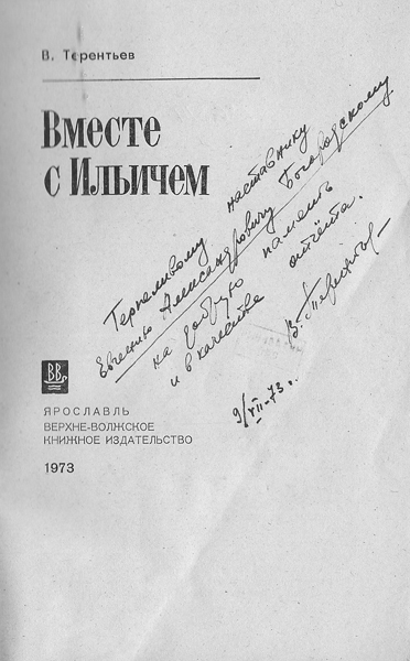 - Терентьев, В.П. Вместе с Ильичем : хроника о связях ивановцев с В.И. Лениным / В.П. Терентьев. – Ярославль : Верхне-Волжское книжное издательство, 1973. – 160 с.