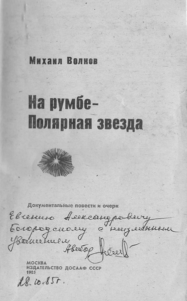 - Волков, М.Д. На румбе – Полярная звезда : документальные повести, очерк / М.Д. Волков. – М. : ДОСААФ, 1985. – 176 с.