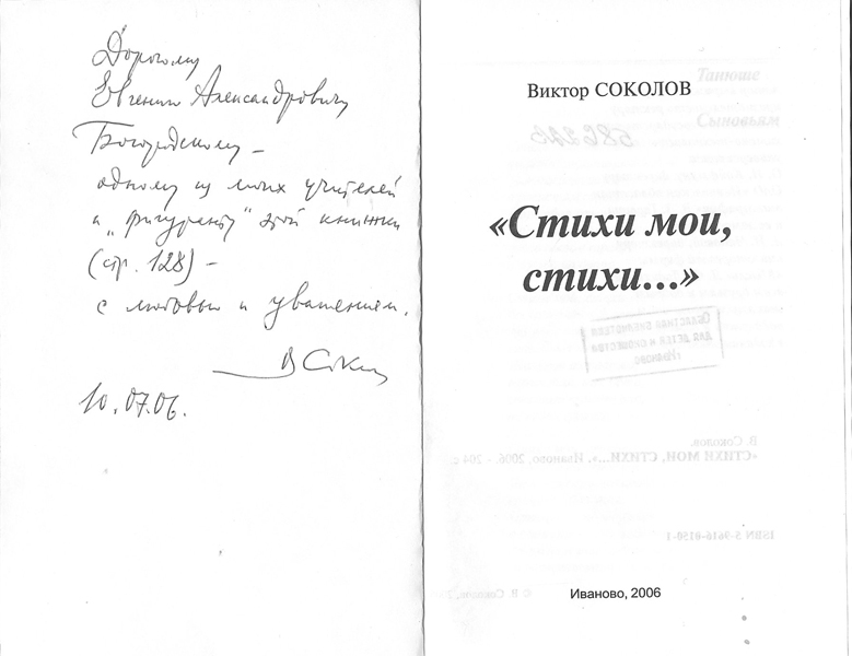 - Соколов, В.Г. Стихи мои, стихи... / Виктор Григорьевич Соколов. – Иваново : [б.и.], 2006. – 204 с.