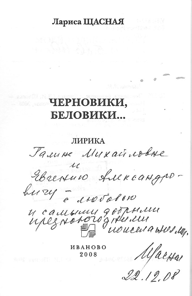 - Щасная, Л.И. «Черновики, беловики…» / Л.И. Щасная. – Иваново : Иваново, 2008. – 144 с.