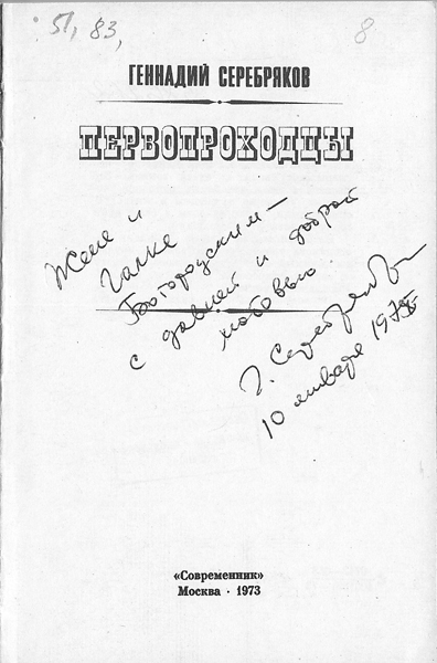 - Серебряков, Г.В. Первопроходцы : стихи / Г.В. Серебряков. – М. : Современник, 1973. – 127 с.