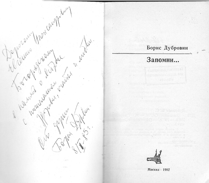 - Дубровин, Б.С. Запомни : стихи / Б.С. Дубровин. – М. : Современник, 1982. – 79 с. – (Новинки «Современника»).