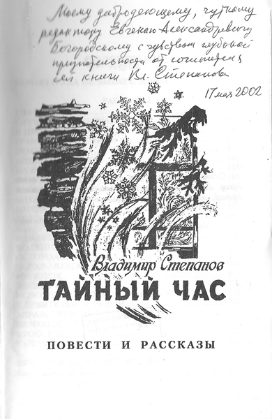 - Степанов, В.А. Тайный час : повести и рассказы / В.А. Степанов. – Иваново : ИГХТУ, 2002. – 340 с.