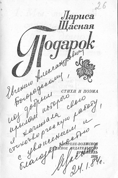 - Щасная, Л.И. Подарок : стихи и поэма / Л.И. Щасная. – Ярославль : Верхне-Волжское книжное изд-во, 1983. – 79 с.