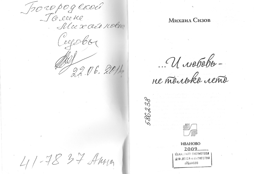 - Сизов, М.А. «…И любовь – не только лето» : стихи / М.А. Сизов. – Иваново : Иваново, 2009. – 68 с.