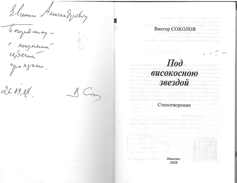- Соколов, В. Над високосною звездой : стихотворения / В. Соколов. – Иваново : Новая Ивановская газета, 2008. – 52 с.