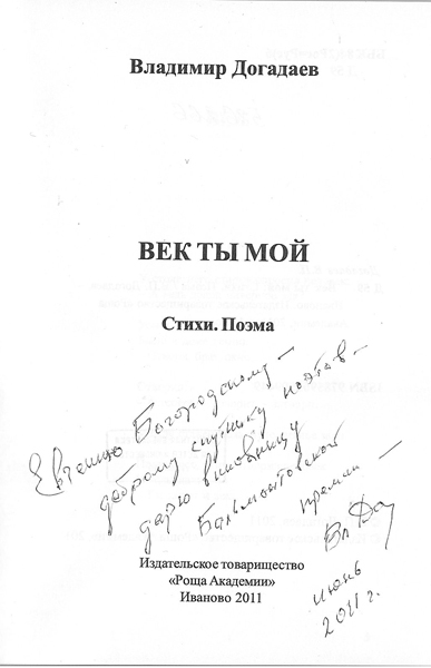 - Догадаев, В.П. Век ты мой : стихи, поэма / В.П. Догадаев. – Иваново : Роща Академии, 2011. – 140 с.