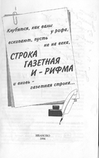 - Строка газетная и – рифма : литературно-художественный сборник. – Иваново : Ивановская газета, 1996. – 111 с.