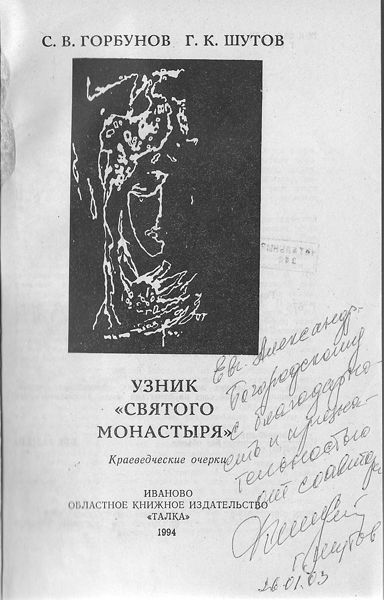 - Горбунов, С.В. Узник «святого монастыря» : краеведческие очерки / С.В. Горбунов, Г.К. Шутов. – Иваново : Талка, 1994. – 248 с.