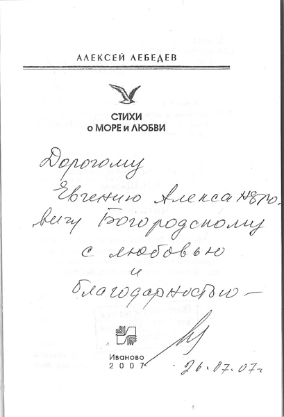 - Лебедев, А.А. Стихи о море и любви : стихотворения / А.А. Лебедев. – Иваново : Иваново, 2007. – 88 с.