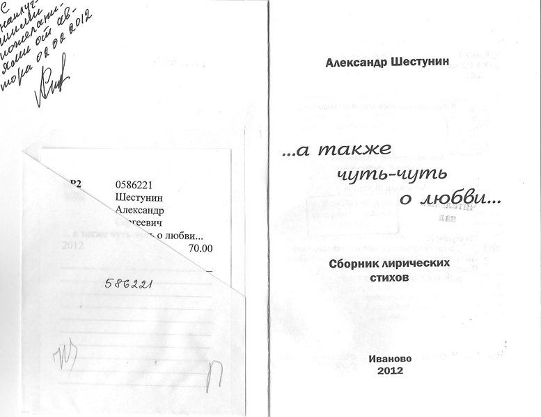 - Шестунин, А.С. «…А также чуть-чуть о любви» : сборник лирических стихов / А.С. Шестунин. – Иваново : ПресСто, 2012. – 88 с.