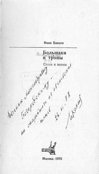 - Ханаев, И.А. Большаки и тропы : стихи и поэмы / И.А. Ханаев. – М. : Современник, 1978. – 111 с. – (Новинки «Современника»).