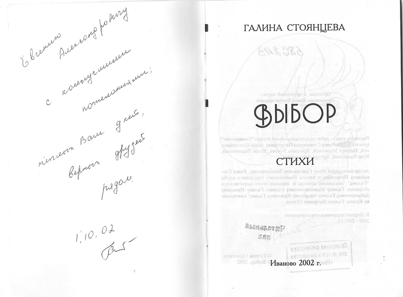 - Стоянцева, Г.А. Выбор : стихи / Г.А. Стоянцева. – Иваново : [б.и.], 2002. – 79 с.