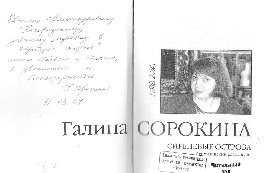 - Сорокина, Г.Д. Сиреневые острова : стихи и песни разных лет / Г.Д. Сорокина. – Иваново : МИК, 2004. – 224 с.