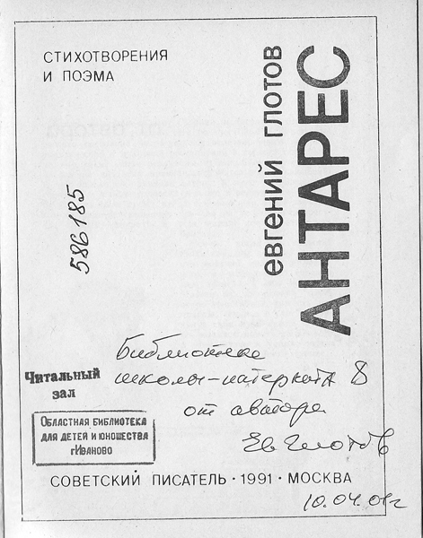- Глотов, Е.Д. Стихи / Е.Д. Глотов. – М. : Советский писатель, 1991. – 144 с.
