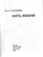 - Голубева, В.Н. Нить жизни / В.Н. Голубева. – М. : Политиздат, 1986. – 160 с. : ил. – (Люди трудовой доблести).