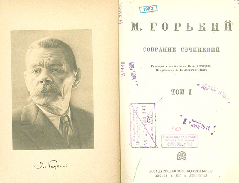 В год полуторавекового юбилея писателя сотрудники Ивановской областной библиотеки для детей и юношества решили проанализировать имеющиеся в фонде ИОБДЮ издания М. Горького. В основном они представлены книгами советских лет, но некоторые из них являются прижизненными и представляют определенный интерес.