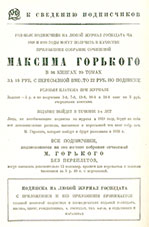 Многотомники Максима Горького, выпущенные товариществом «Знание», издательствами «Жизнь и знание» и «Книга» в 1923-1927 гг. в Берлине, являются самыми известными. Затем более полные издания сочинений писателя выпускались советскими государственными издательствами последовательно в 1928-1930 гг., 1933-1934 гг., 1939-1940 гг.