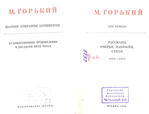 - Горький, М. Полное собрание сочинений / Максим Горький. – Петроград : Издание товарищества А. Ф. Маркса, 1917. – т. I, кн. I ; т. II, кн. II, IV-V, VII-ХIII.