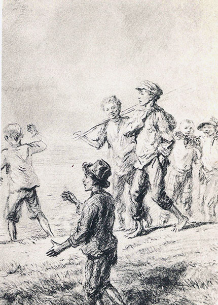 Серия иллюстраций к «Детству» («Детская литература», 1969), включающая помимо страничных зарисовок многочисленные мелкие композиции – заставки, концовки, инициальные рисунки, – представляет собой единое целое, исполненное с большим изяществом. Многолетний труд художника Б.А. Дехтерева был удостоен Государственной премии.