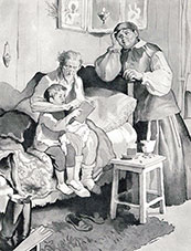 Автобиографическая трилогия Горького «Детство», «В людях», «Мои университеты» также предоставляла большие возможности для творчества художников. Список иллюстраторов повестей трилогии, как и некоторых других произведений писателя, открывает имя Б.М. Кустодиева. Вслед за ним приступил к иллюстрированию произведений Максима Горького А.А. Пластов. Постоянными иллюстраторами трилогии стали Е.Д. Белуха, Б.А. Дехтерев, А.Н. Варнавицкая, А.А. Харшак.