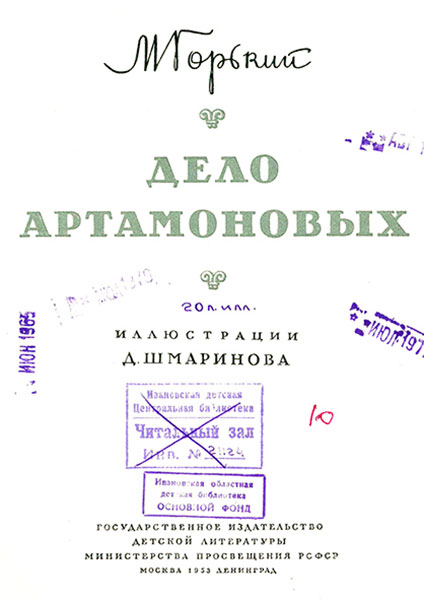 - Горький, М. Дело Артамоновых / Максим Горький ; ил. Д. Шмаринов. – М.-Л. : Детгиз, 1953. – 327 с. : ил. –( Школьная библиотека).