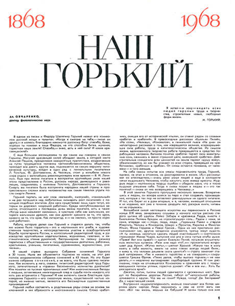 - Овчаренко, А. Наш Горький // Огонек. – 1968. – № 13. – С. 1-4.