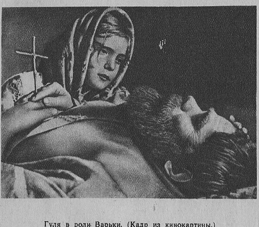 Конечно, значительную роль играют в книге многочисленные фотографии Гули. Они делают повесть ярче и опять-таки подлиннее. Е. Ильина строит свое произведение как дневник о жизни человека, начиная с первых дней и заканчивая его гибелью, и фотографии не просто приложены к этому дневнику, они являются равноправными его страницами. Читатель не только узнает как Гуля росла, как менялась, чем увлекалась, но и видит в документах все эти изменения. Вот фотографии совсем маленькой кудрявой девочки. А вот уже Гуля пионерка-артековка, вот она среди испанских ребят. Есть в книге и кадры из фильмов, в которых снималась Гуля. Много и военных ее фотографий. Все эти фотоматериалы служат и прекрасной иллюстрацией к рассказу, и подчеркивают композиционную стройность книги, и одновременно освобождают писательницу от необходимости давать словесные описания Гулиной внешности.