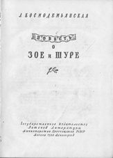 - Космодемьянская, Л.Т. Повесть о Зое и Шуре / Л.Т. Космодемьянская. – М.-Л. : Детгиз, 1950. – 208 с.