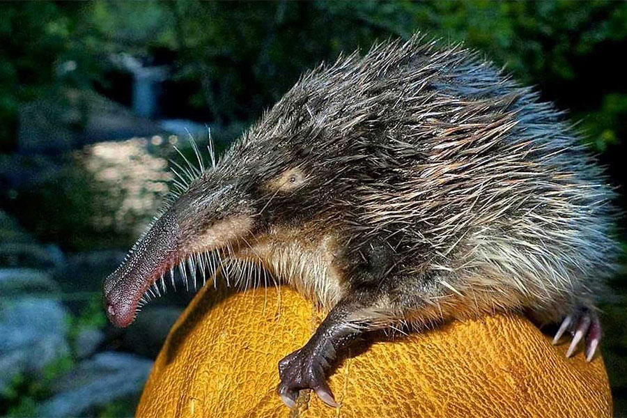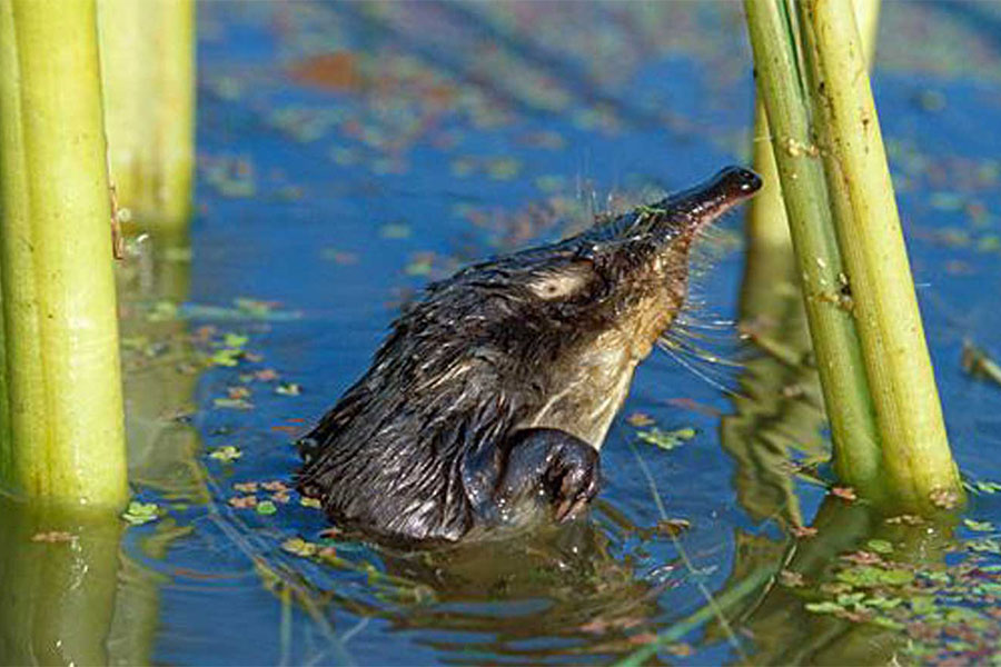 - Мордочка зверька вытянута в виде подвижного хоботка, на конце которого расположены ноздри. Иногда, прежде чем всплыть на поверхность, выхухоль выставляет свой хоботок и, поворачивая его во все стороны, обнюхивает воздух.