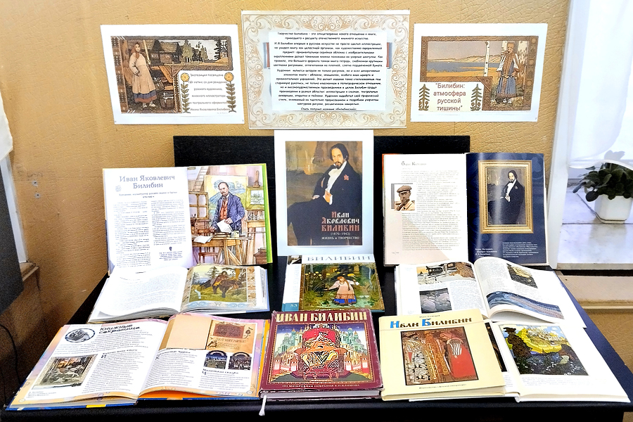 На выставке представлены книги для аудитории разного возраста. Юным читателям адресованы «Энциклопедия живописи» и «Моя первая книга об искусстве» с яркими иллюстрациями и доступным текстом, которые сделают познание творчества И.Я. Билибина увлекательным. Взрослые посетители найдут книги с богатой полиграфией, из которых узнают подробную творческую биографию художника, увидят более 60-ти его иллюстраций. Книги расскажут о детстве и первых работах Ивана Яковлевича, о поездках по губерниям России и на Север, о путешествиях по Европе и Африке, о жизни в Крыму и на Востоке. Особый интерес вызовут издания, в которых собрана книжная, журнальная и прикладная графика мастера линии, его театрально-декоративное искусство. Также на выставке представлена летопись жизни и творчества Ивана Яковлевича Билибина в документальных материалах.