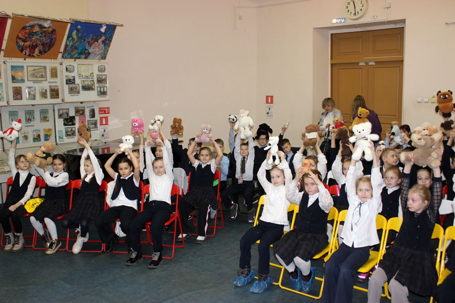 Затем школьники познакомились с британским писателем Аланом Милном – автором истории о плюшевом медвежонке Винни. Они узнали, что его учителем был писатель-фантаст Герберт Уэллс, а сам Милн окончил Кембридж как математик, однако стал журналистом и детским писателем. Также детям рассказали о медведице Виннипег из Лондонского зоопарка, спасённой от браконьеров, и о восьми породах медведей. Вместе с ведущими ребята «прогулялись» по страницам любимой книги в переводе Бориса Заходера, посмотрели мультфильм про медвежонка с голосом Евгения Леонова и с удовольствием подпевали песенкам о тучке, колыбельной Умки и Happy Birthday to You.