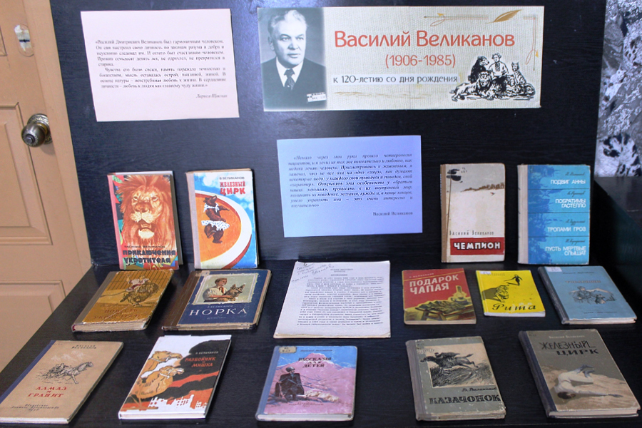 Среди книг на выставке можно познакомиться с такими изданиями, как «Железный цирк» (1987), «Приключения укротителя» (1976), «Повесть об укротителе» (1957), «Рассказы для детей» (1955), «Казачонок» (1958)», «Чемпион» (1962), «Подарок Чапая» (1981): рассказы о детях и взрослых, которые были непосредственными свидетелями и участниками великих событий в истории нашей Родины – Гражданской и Великой Отечественной войн. В экспозиции также можно увидеть автобиографию писателя, которую он подарил библиотеке, оставив на ней свой автограф.