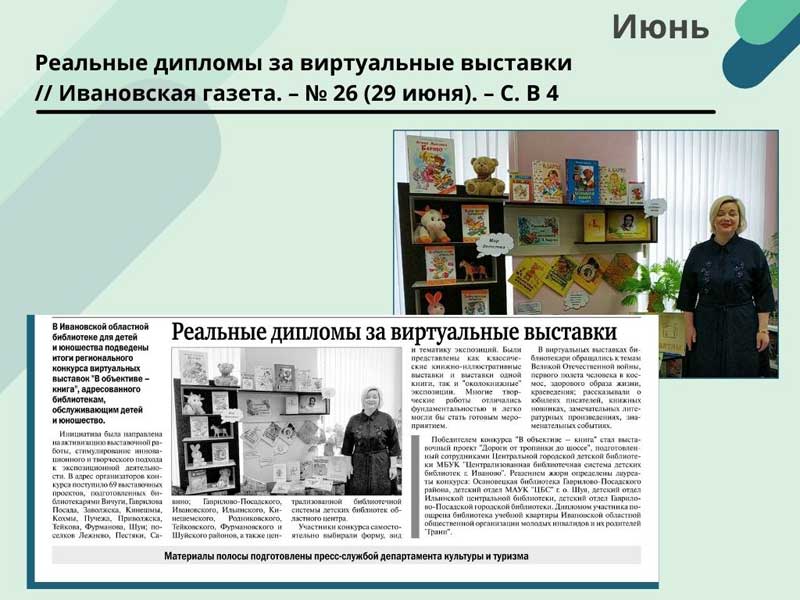 - Реальные дипломы за виртуальные выставки // Ивановская газета. – N 26 (29 июня). – С. В 4 (Скачать)