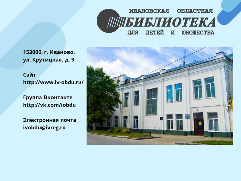 (с) Государственное бюджетное учреждение Ивановской области «Ивановская областная библиотека для детей и юношества», 2007-2026